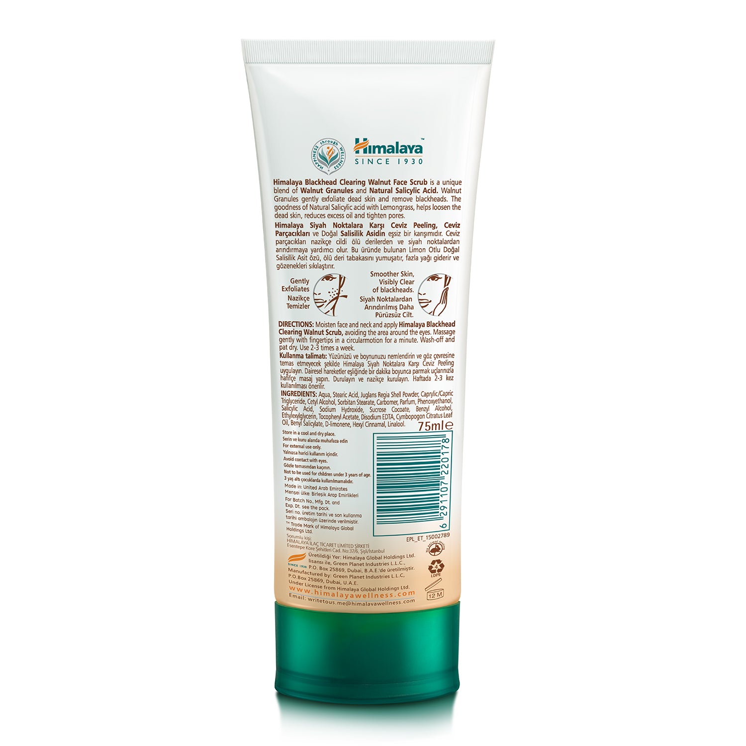 Himalaya Siyah Noktalara Karşı Ceviz Özlü Scrub, Ceviz Parçacıkları ve Doğal Salisilik Asidin eşsiz bir karısımıdır.